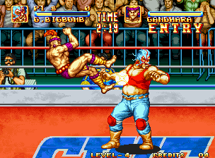 3 Count Bout (aka ファイヤー・スープレックス, 3CB, Fire Suplex), a really nice sports game sold in 1993 for Neo Geo, is available and ready to be played again! Also available on Arcade and Neo Geo CD, time to play a fighting and wrestling video game title.