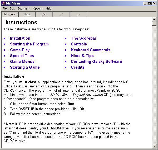 Share your gamer memories, help others to run the game or comment anything you'd like. If you have trouble to run 3D Ms. Maze: Tropical Adventures (Windows), read the abandonware guide first!