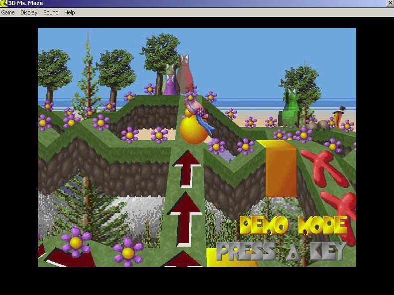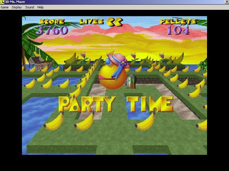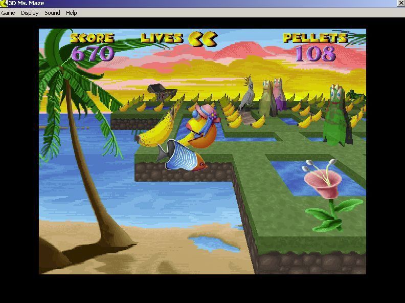 Here is the video game “3D Ms. Maze: Tropical Adventures”! Released in 1998 on Windows, it's still available and playable with some tinkering. It's an action game, set in an arcade theme.