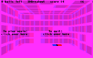 If you haven't played 3DBreakout or want to try this action video game, download it now for free! Published in 1986, 3DBreakout (aka Three Dimensional Breakout) was an above-average paddle / pong title in its time.