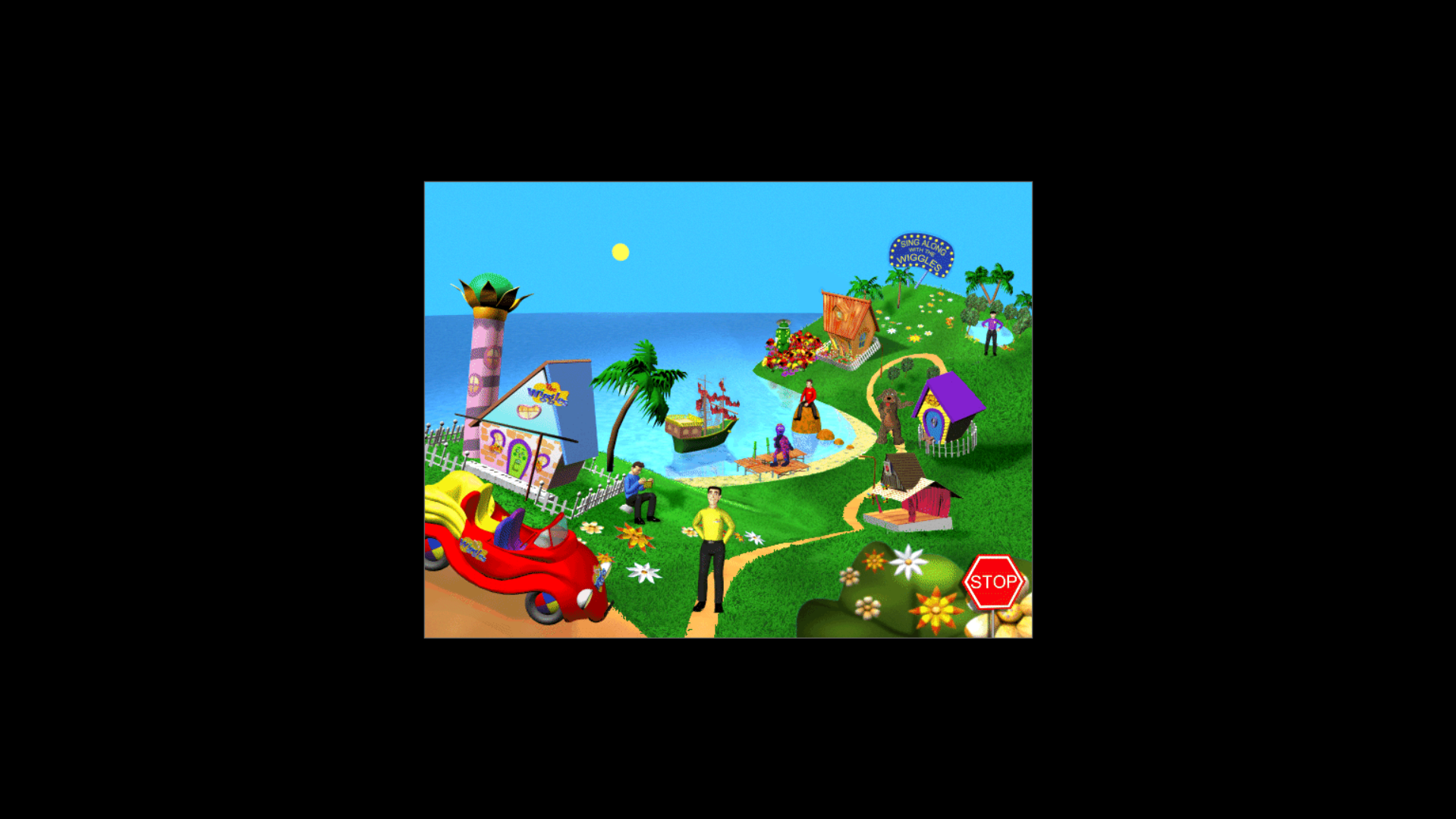 Here is the video game “A Day with the Wiggles”! Released in 1998 on Windows, it's still available and playable with some tinkering. It's an educational game, set in a mini-games theme.