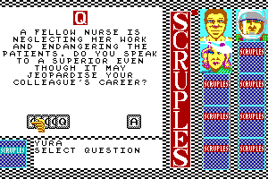 1988, the year A Question of Scruples: The Computer Edition was released on DOS, as well as Amstrad CPC, Apple II, Commodore 64 and ZX Spectrum. Made by Sentient Software Ltd. and published by Leisure Genius, this strategy game is available for free on this page.