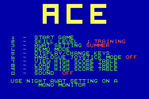 For a futuristic airplane, AWAT's weapons are quite primitive: cannon, manually-aimed air-to-air, air-to-ground, and air-to-sea missiles, and missile decoy flares which are very effective. Radar and satellite map both help you locate the baddies, but it's still a real struggle to actually hit anything without being shot down. For its age and size, it's quite amazing that Cascade managed to add a lot of "little extras" such as a cool in-flight refuelling sequence, and a choice of summer, night or winter flying (although that only changes color palette in the woefully ugly CGA mode). There's no denying the fact that ACE has more in common with arcade shooters than even semi-sims like SkyFox.