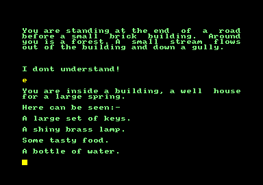 Here is the video game “Adventure 1”! Released in 1984 on Commodore 64, it's still available and playable with some tinkering. It's an adventure game, set in an interactive fiction, fantasy and puzzle elements themes and it was released on Amstrad CPC, BBC Micro, Electron and MSX as well.