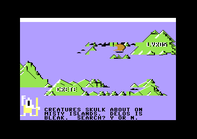In 1984, Spinnaker Software Corporation, Maxion publishes Aegean Voyage on Commodore 64. Also published on ZX Spectrum, this educational game is abandonware and is set in a math / logic, real-time, greek mythology and classical antiquity themes.