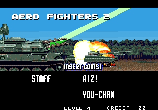 Aero Fighters 2 is a video game published in 1994 on Neo Geo by SNK Corporation, SNK of America. It's an action game, set in an arcade, shooter and shmup themes, and was also released on Arcade and Neo Geo CD.