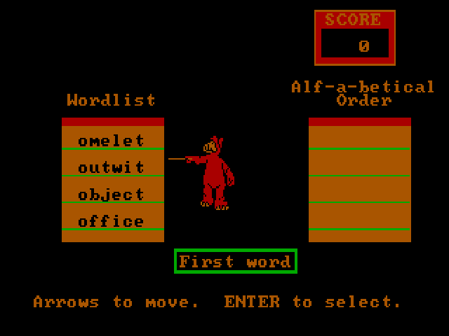 Here is the video game “ALF: World of Words”! Released in 1988 on DOS, it's still available and playable with some tinkering. It's an educational game.