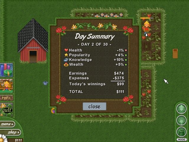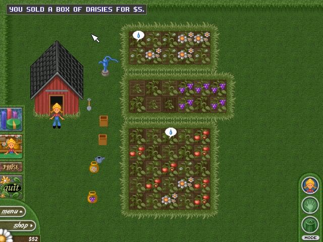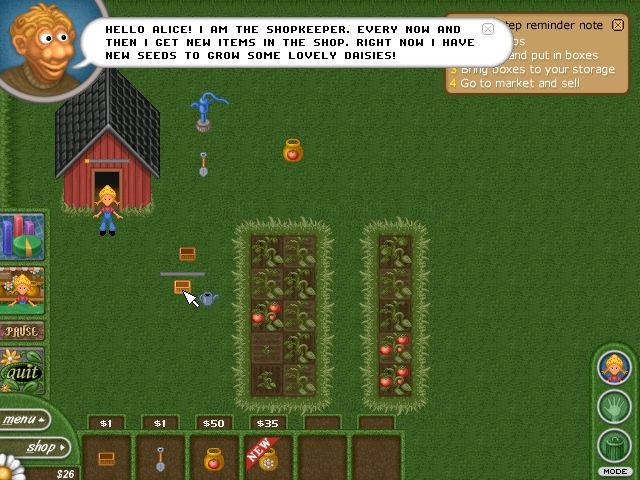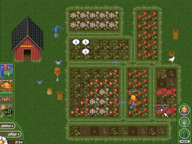 Alice Greenfingers is a video game published in 2007 on Windows by MumboJumbo, LLC, Arcade Lab. It's an action game, set in a time management theme.