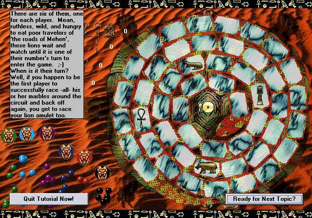 Share your gamer memories, help others to run the game or comment anything you'd like. If you have trouble to run Ancient Egyptian Mehen: The Forbidden Game of the Snake (Windows), read the abandonware guide first!