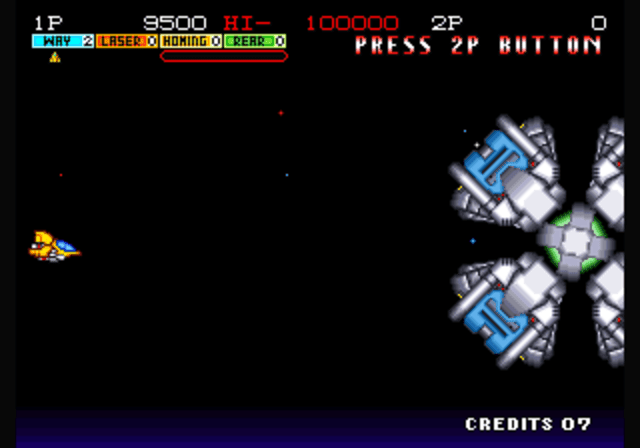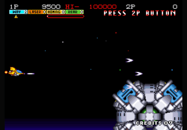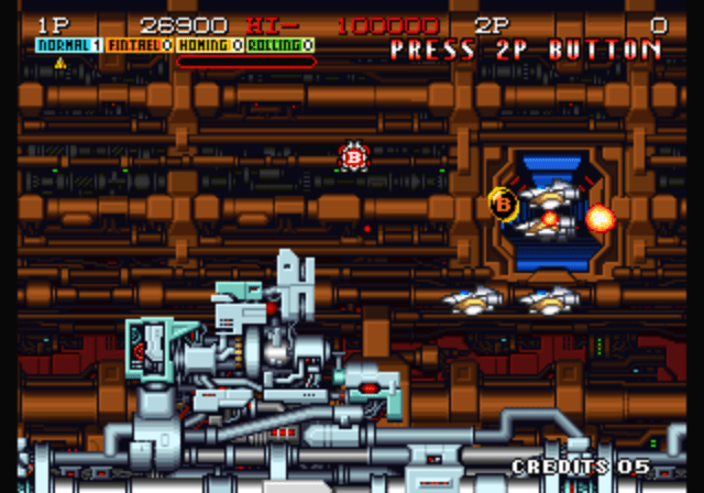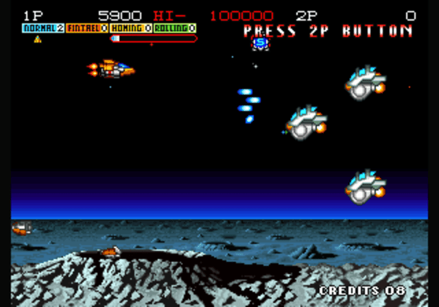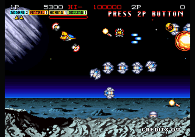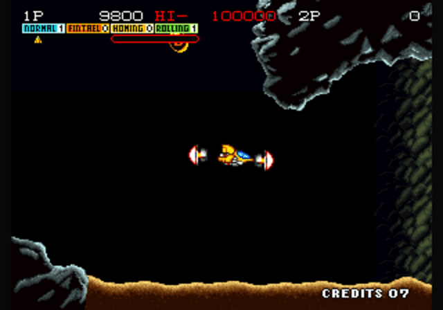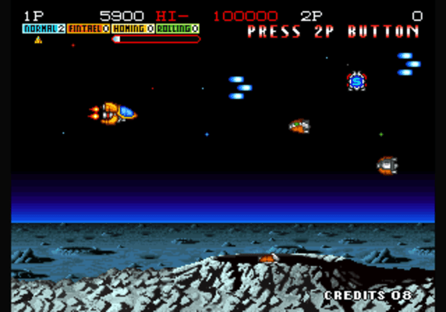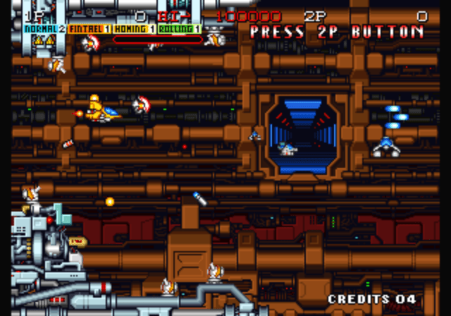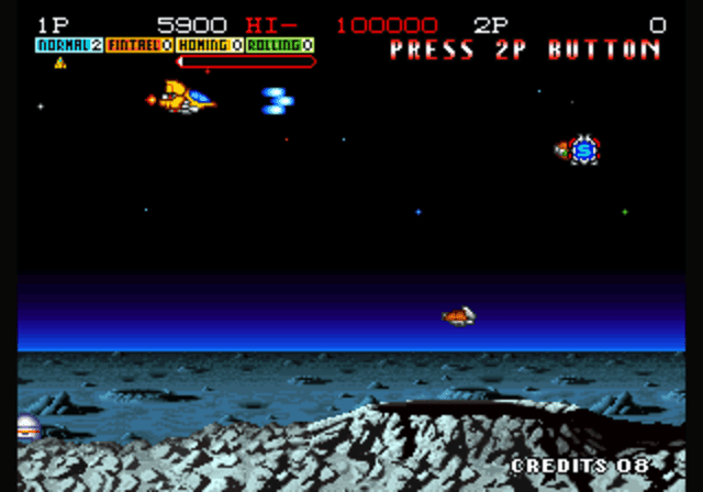 Here is the video game “Andro Dunos”! Released in 1992 on Neo Geo, it's still available and playable with some tinkering. It's an action game, set in an arcade, sci-fi / futuristic, shooter, shmup and space flight themes and it was released on Arcade as well.