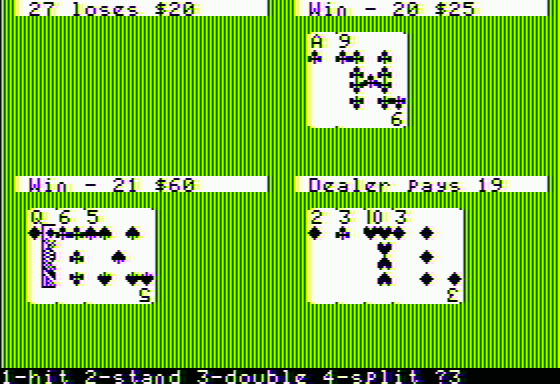 If you haven't played Apple '21' or want to try this strategy video game, download it now for free! Published in 1978 by Mad Hatter Software, Softape, Rainbow Computing, Inc., Software Exchange, The, Apple '21' is still a popular cards title amongst retrogamers, with a whopping 3.7/5 rating.