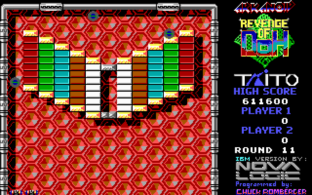 In 1989, Taito Corporation publishes Arkanoid: Revenge of DOH on DOS. Also published on Amiga, Amstrad CPC, Apple IIgs, Arcade, Atari ST, Commodore 64, MSX and Sharp X68000, this action game is abandonware and is set in an arcade, paddle / pong and editor / construction set themes.