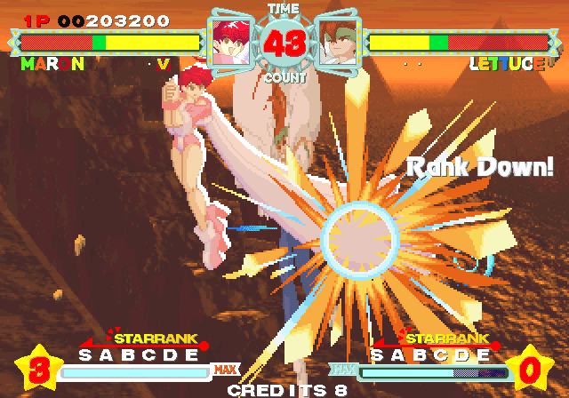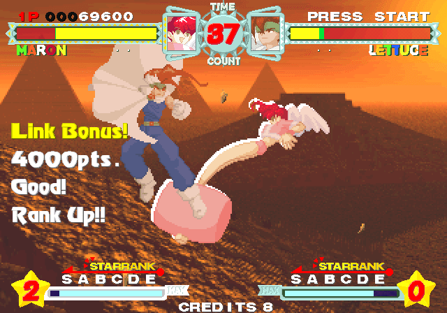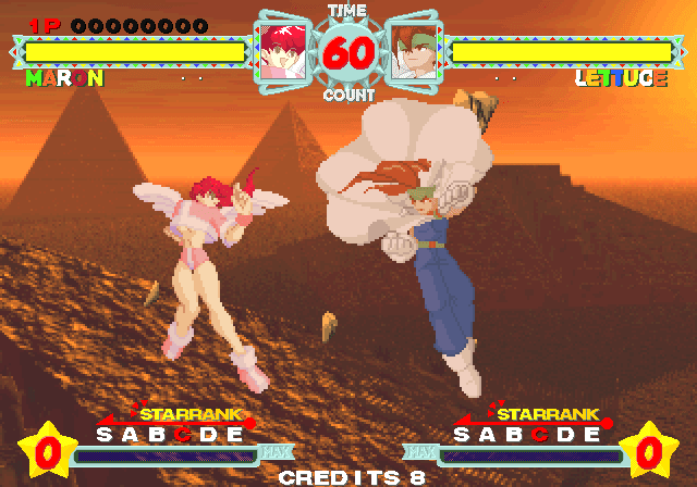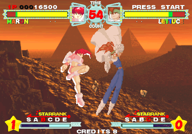 Here is the video game “Astra Superstars”! Released in 1998 on SEGA Saturn, it's still available and playable with some tinkering. It's an action game, set in an anime / manga, arcade and fighting themes and it was released on Arcade as well.