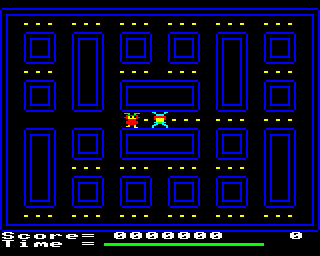 1983, the year Atomic Protector was released on BBC Micro. Published by Optima Software, Ltd., this action game is available for free on this page.