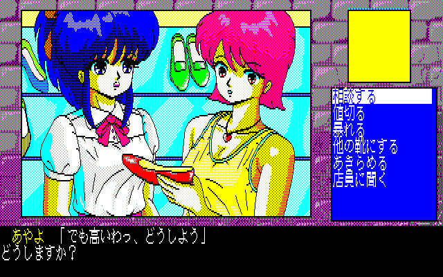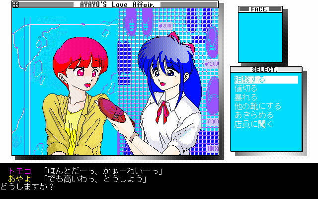 In 1990, HARD publishes Ayayo's Love Affair on PC-88. Also published on PC-98 and Sharp X68000, this adventure game is abandonware and is set in an adult, anime / manga and visual novel themes.