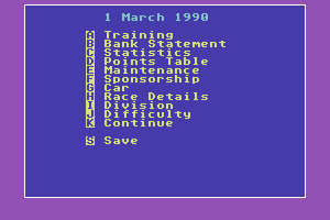 Here is the video game “Banger Racer”! Released in 1991 on Commodore 64, it's still available and playable with some tinkering. It's a racing / driving game, set in a managerial theme.