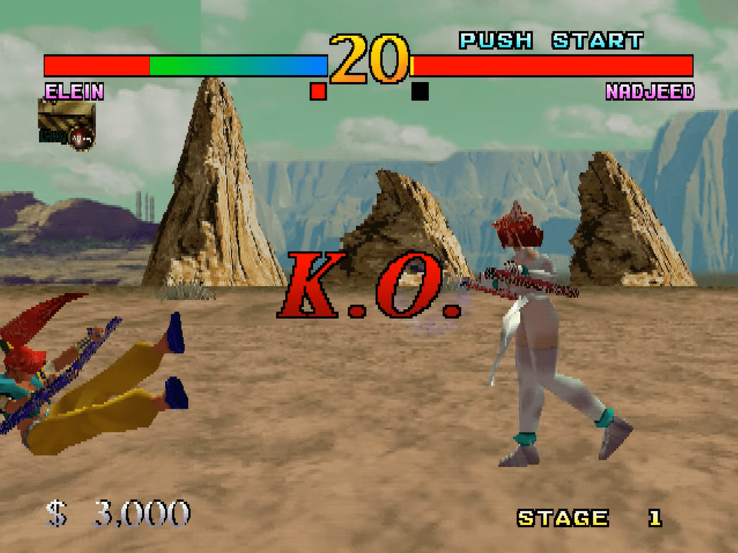 Here is the video game “Battle Tryst”! Released in 1998 on Arcade, it's still available and playable with some tinkering. It's an action game, set in an anime / manga and fighting themes.