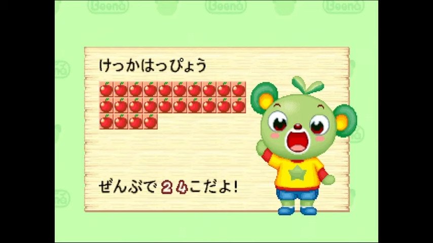 Here is the video game “Beena Town e Youkoso”! Released in 2005 on Pico Beena, it's still available and playable with some tinkering. It's an action and educational game, set in a graphics / art and math / logic themes.