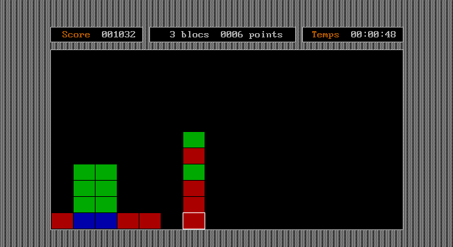 Here is the video game “Blocks”! Released in 2002 on DOS, it's still available and playable with some tinkering. It's a puzzle game, set in a tile matching puzzle theme.