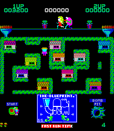 1983, the year Blueprint was released on Atari 2600, as well as Arcade and Commodore 64. Made by Zilec Electronics and published by CBS Electronics, this action game is available for free on this page.