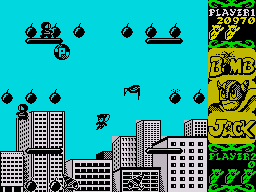 Here is the video game “Bomb Jack”! Released in 2002 on DOS, it's still available and playable with some tinkering. It's an action game, set in an arcade and platform themes and it was released on Windows, Amiga, Amstrad CPC, Arcade, Atari ST, Commodore 16, Plus/4, Commodore 64, ExEn, J2ME, Mophun, PC-88, SG-1000 and ZX Spectrum as well.