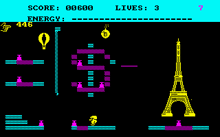 Here is the video game “Bombscare”! Released in 1985 on Amstrad CPC, it's still available and playable with some tinkering. It's an action game, set in an arcade and platform themes.