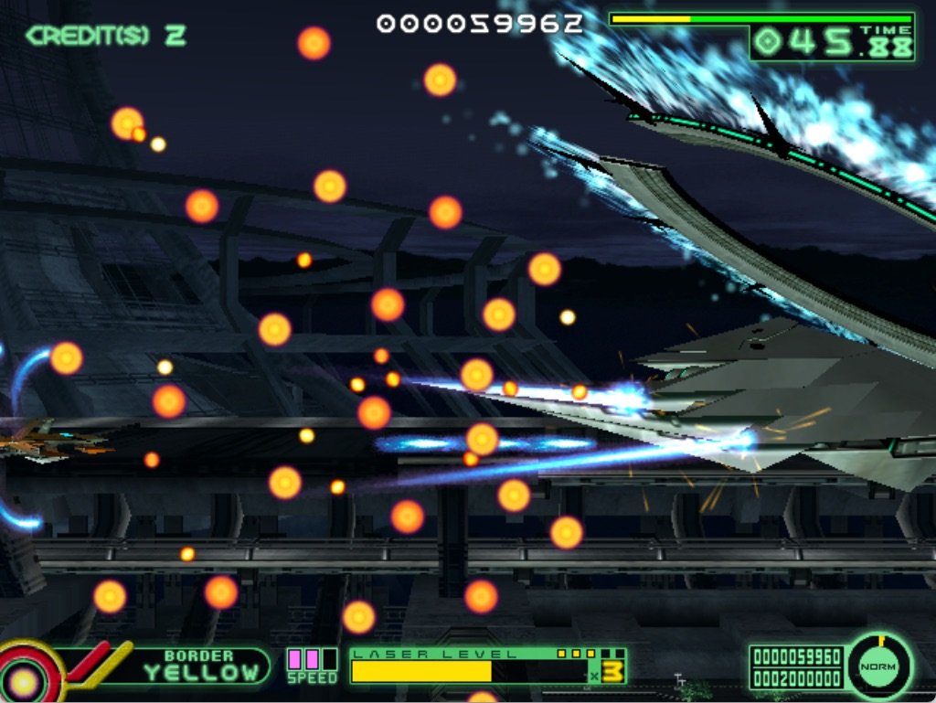 Border Down (aka ボーダーダウン) is a video game published in 2003 on Arcade by SEGA Enterprises Ltd.. It's an action game, set in an arcade, sci-fi / futuristic and shooter themes.