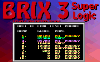 Brix 3: Superlogic is a video game published in 1994 on DOS by Mad Data. It's a puzzle game, set in a real-time and time management themes.