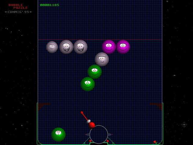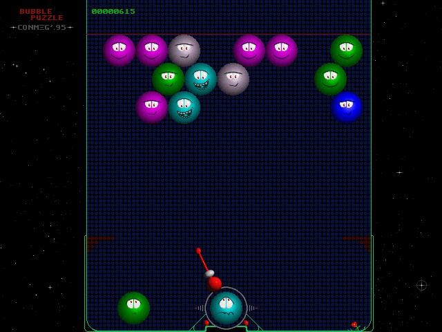 1995, the year Bubble Puzzle was released on DOS. Made and self published by Conmeg Spielart, this puzzle game is available for free on this page.