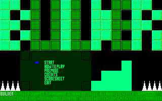 Here is the video game “Builder”! Released in 2011 on DOS, it's still available and playable with some tinkering. It's an action game, set in a platform and puzzle elements themes.