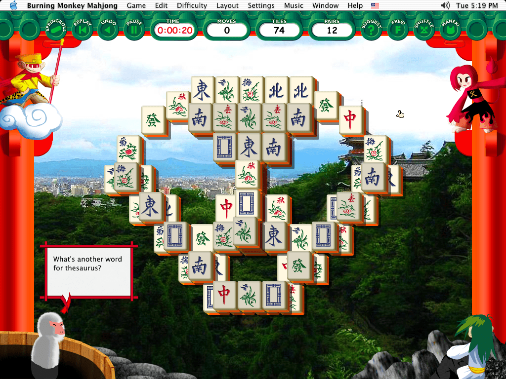 Share your gamer memories, help others to run the game or comment anything you'd like. If you have trouble to run Burning Monkey Mahjong Solitaire (Mac), read the abandonware guide first!