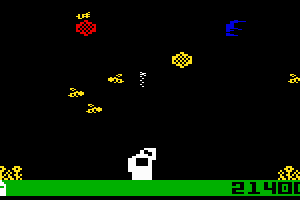 Here is the video game “Buzz Bombers”! Released in 1983 on Intellivision, it's still available and playable with some tinkering. It's an action game, set in an arcade and shooter themes.
