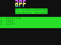 In 1978, APF Electronics, Inc. publishes Casino 1: Roulette/Keno/Slots on APF Imagination Machine. This strategy game is now abandonware, you can get it here.