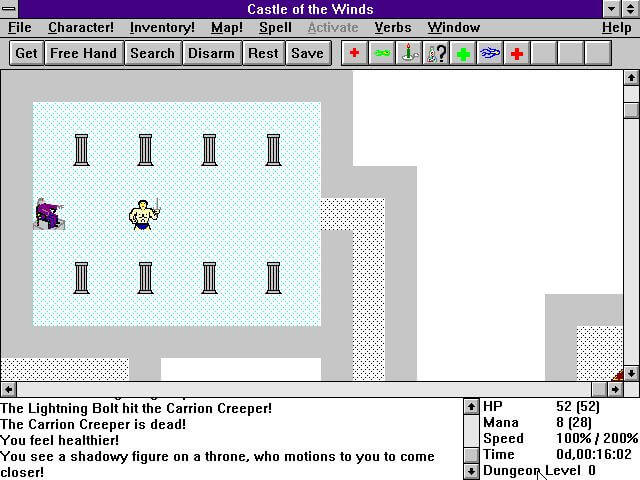 This game is deceptively simple to play and it seems somewhat vague and straightforward until you start experimenting with the increased magic and battle abilities where it takes a whole new level of playing. Castle of the Winds is a roleplaying game that's both like and unlike any other where the 18 year young man has to avenge the deaths of his dear family and go out into the world to fulfill a destiny that's tied to his own future and the future of the world in which he dwells. Surely a good game to spend the hours at your leisure and play however long or short time you want.👍💯🙌
