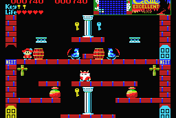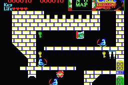 Here is the video game “Castlequest”! Released in 1986 on MSX, it's still available and playable with some tinkering. It's an action game, set in an arcade, fantasy, platform, puzzle elements and regional differences themes and it was released on FM-7 and PC-88 as well.