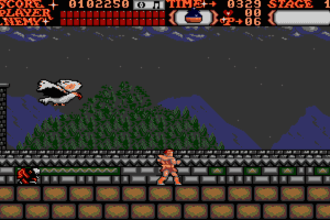 In addition to great level design that is never repetitive, another hallmark of Castlevania is the numerous famous undead who stand in your way, each with his (its?) own attack style. As end-level bosses, they are extremely difficult to defeat. Frankenstein, for example, is not only very tough, but comes with his helper, little Igor who jumps around throwing fireballs at you. Dracula himself is one of the toughest bosses you'll ever find in an action game, and it'll take you a good part of the hour (if not days) to defeat him.