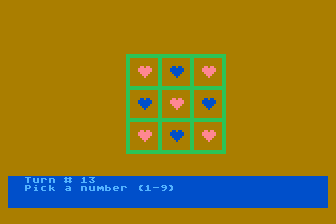In 1981, SoftSide Magazine publishes Changing Hearts on Atari 8-bit. This strategy game is now abandonware and is set in a board / party game and turn-based themes.