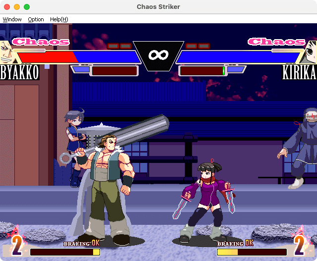 Here is the video game “Chaos Striker”! Released in 2002 on Windows, it's still available and playable with some tinkering. It's an action game, set in an anime / manga, fighting and 2d fighter maker themes.
