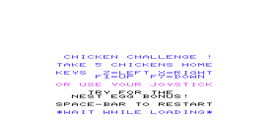 Share your gamer memories, help others to run the game or comment anything you'd like. If you have trouble to run Chicken Challenge (VIC-20), read the abandonware guide first!