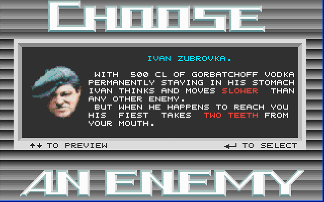 One of the best examples of how Russians vent their anger (or maybe not!), Choose An Enemy is a fun mildless action game from little-known developer Russian Soft.