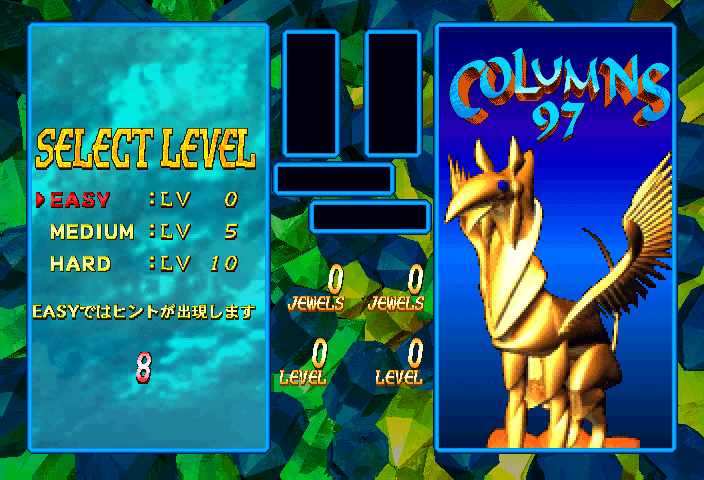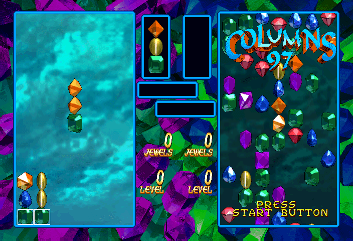 Columns 97 (aka コラムス97) is a video game published in 1997 on Arcade by SEGA Enterprises Ltd.. It's an action and puzzle game, set in a fantasy and falling block puzzle themes.