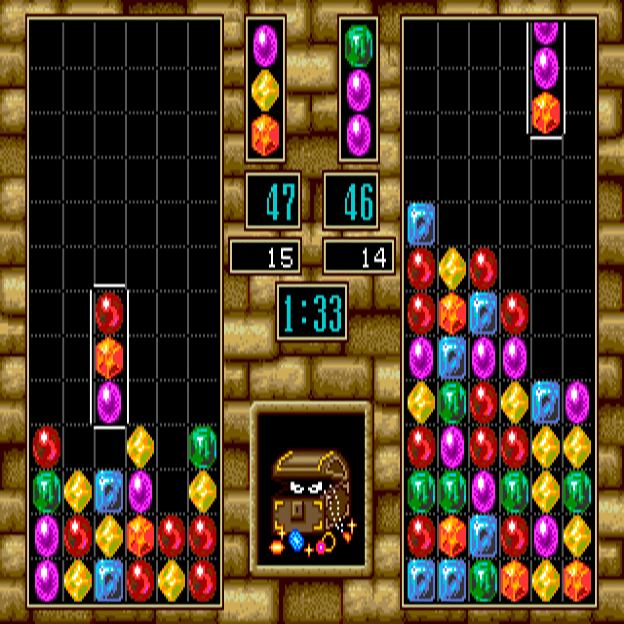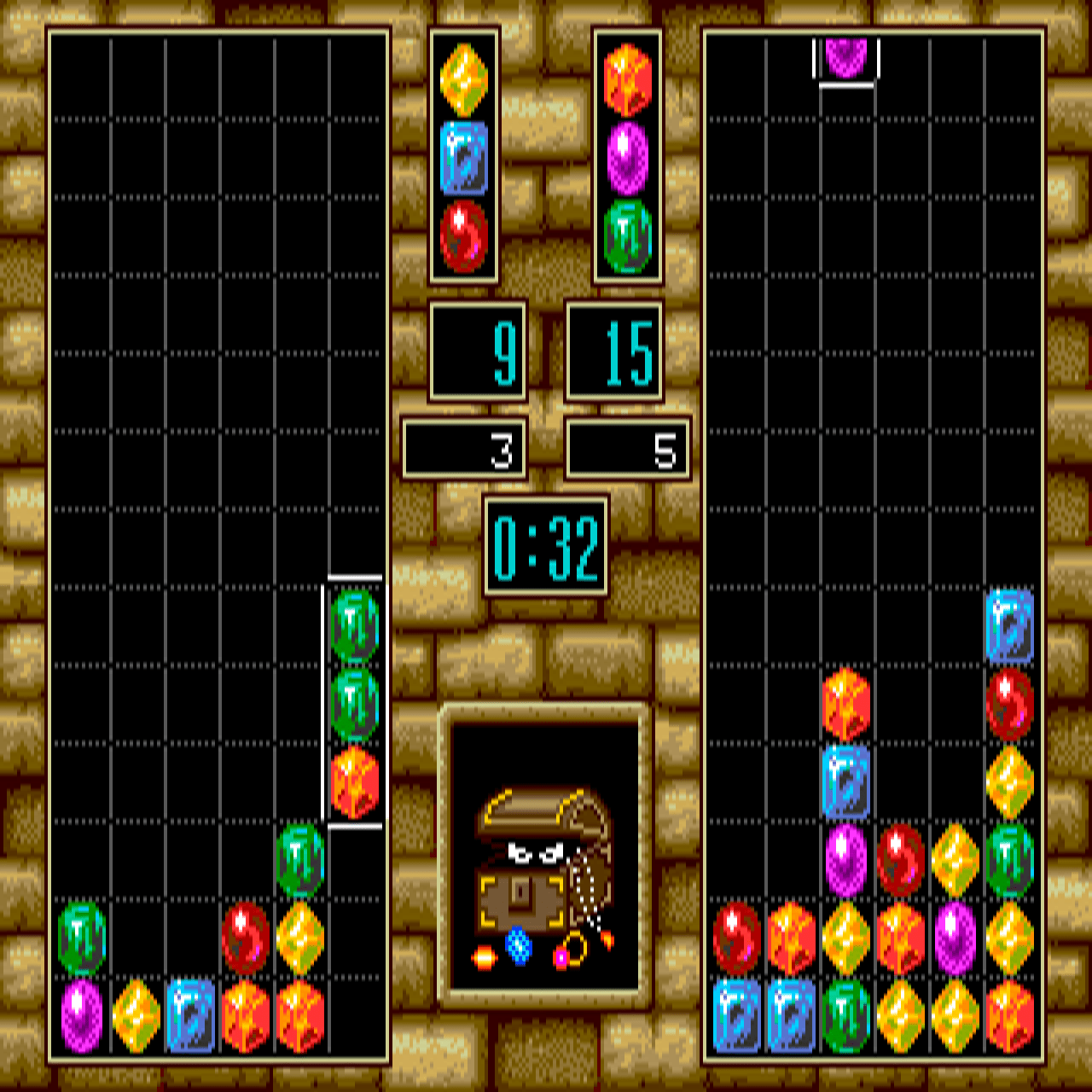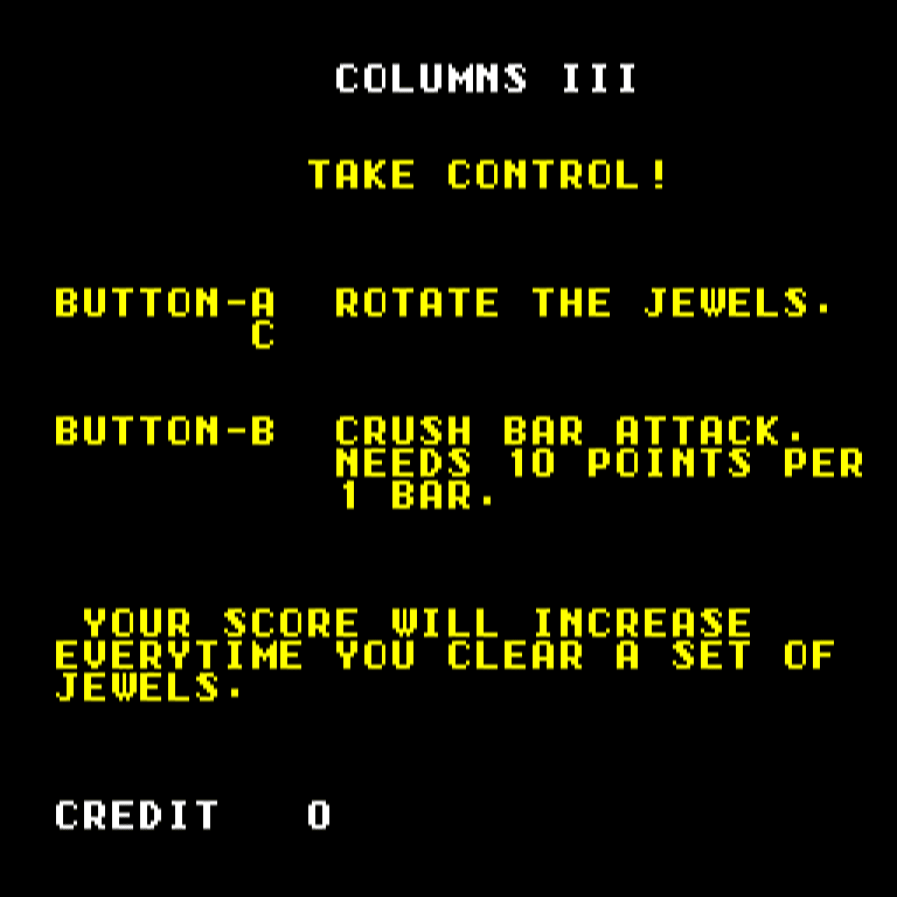 If you haven't played Columns III: Revenge of Columns or want to try this puzzle video game, download it now for free! Published in 1993 by SEGA Enterprises Ltd., Vic Tokai, Inc., Columns III: Revenge of Columns (aka コラムスⅢ 対決!コラムスワールド, Columns III: Taiketsu! Colums World) was an above-average falling block puzzle title in its time.