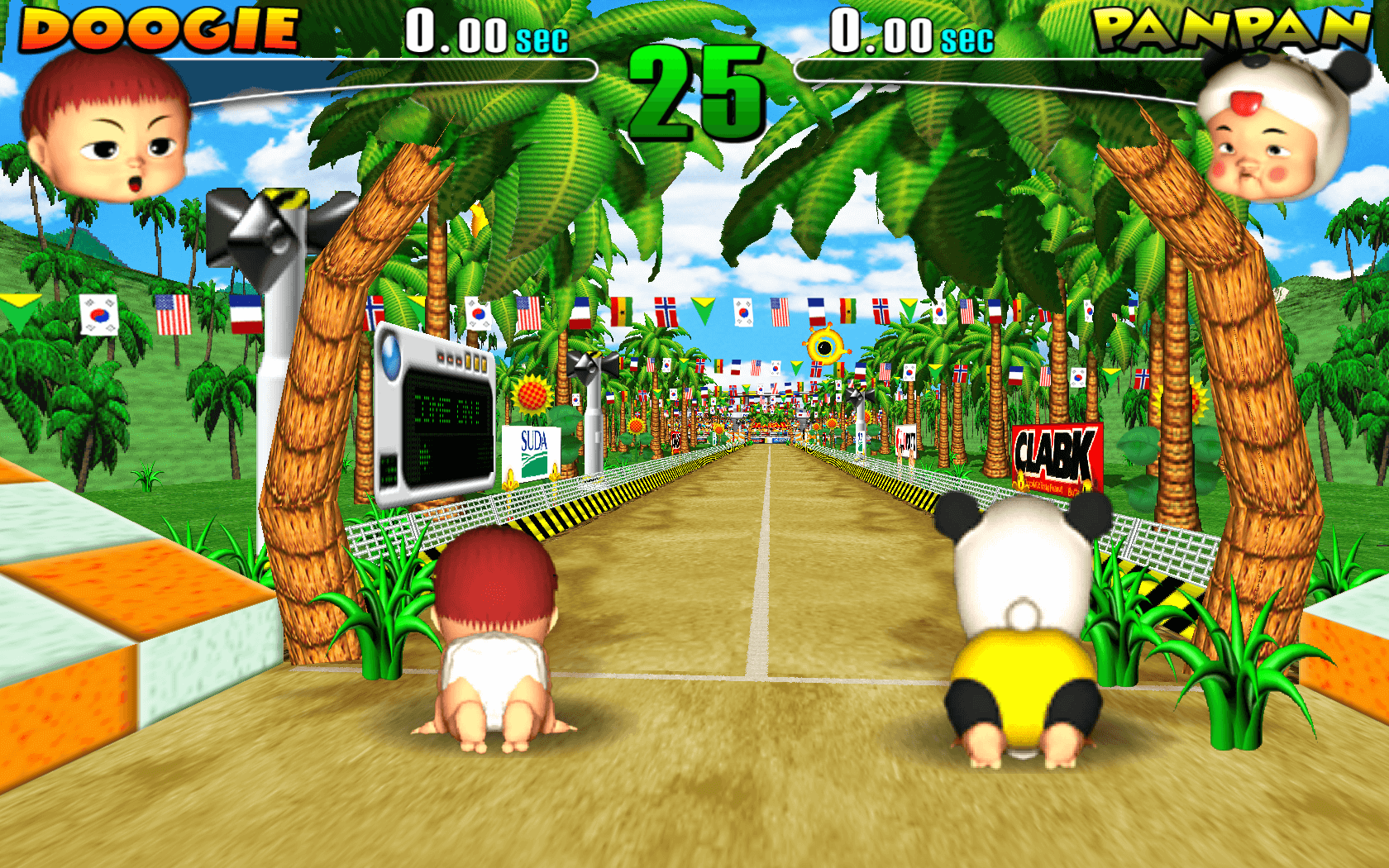 In 2000, Expotato Corporation publishes Come On Baby on Arcade. This action and sports game is now abandonware and is set in an athletics and comedy themes.
