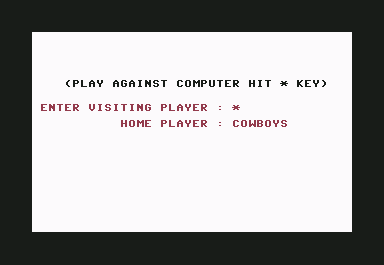 Computer Football Strategy is a video game published in 1983 on Commodore 64 by The Avalon Hill Game Company. It's a strategy, simulation and sports game, set in a football (american) theme, and was also released on Atari 8-bit.