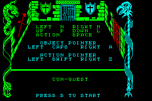 Con-Quest is a video game published in 1987 on Commodore 64 by Mastertronic Ltd.. It's an action and adventure game, set in a fantasy theme, and was also released on Amstrad CPC and ZX Spectrum.