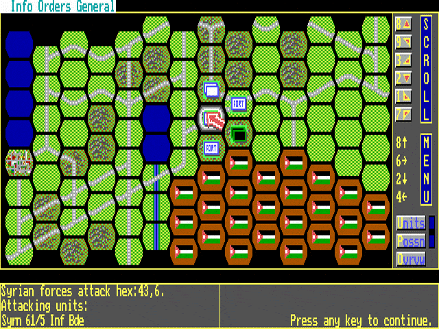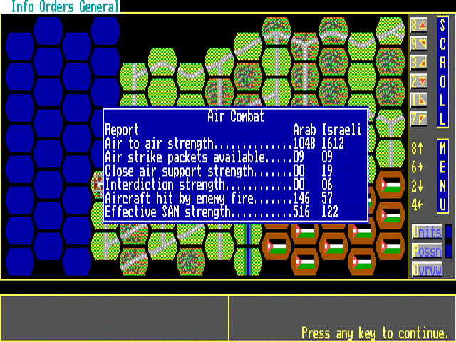 Alternatively the method to beat Egypt is a mix of strategies. At first, I believed it to be strategically sound to withdraw from the Suez deep into Israel to allow the most amount of time for my armies to group up. This strategy failed though as the Egyptian AI was reluctant to advance too far outside of its SAM cover and when I finally launched a counteroffensive it failed miserably. Alternatively, I tried to hold the BAR forts along the Suez and was mostly succesful, the only problem was that eventually the Egyptians would break through on one of the fronts and collapse my whole line.