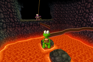 Here is the video game “Croc 2”! Released in 2000 on Windows, it's still available and playable with some tinkering. It's an action game, set in a fantasy and platform themes.