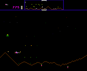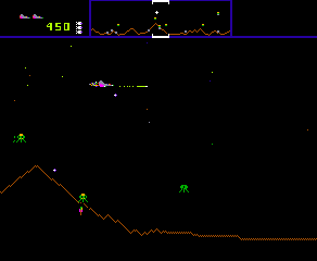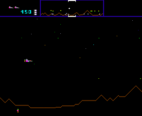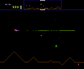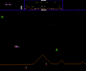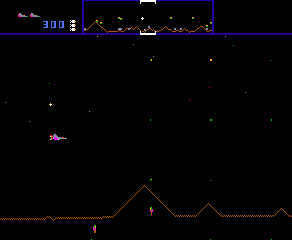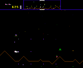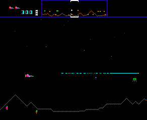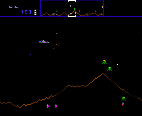 Your mission, as captain of the "Defender" ship, is to protect the humanoids stranded on the planet from their alien abductors. The scanner will help you determine a strategy to shoot down the alien ships before they reach the humanoids. If you destroy the aliens after they have captured their prey, you must return the humanoids to the safety of the planet or they will fall to their death. If an alien carries its victim out of your range, the humanoid will mutate, join the alien force, and take to assault with deadly vengeance.