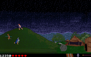 The game is broken into six platform-style levels, each based on an episode in David's life, with distinct objectives to accomplish. As David, you will start the game as a lowly shepherd who must protect his flock from wild animals. Each level is more difficult than the last, and a few of them even have puzzles to solve (most of which involve figuring out what to do next, such as how to get onto the ledge, etc.)