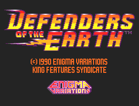 In 1990, Hi-Tec Software Ltd., Enigma Variations Ltd. publishes Defenders of the Earth on Commodore 64. Also published on Amiga, Amstrad CPC, Atari ST, SAM Coupé and ZX Spectrum, this action game is abandonware and is set in an arcade, sci-fi / futuristic, shooter, licensed title, platform and tv cartoons themes.